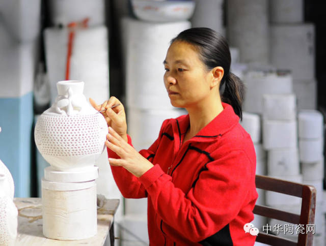 這種陶瓷叫“通花”,又稱透雕、鏤空,是以雕刻為主的裝飾手法。德化在明清的博山薰?fàn)t、八卦香爐、筆筒等產(chǎn)品上就有采用。但由于制工極其精細(xì),目前此技法傳承甚少。而從小受陶瓷文化陶冶的陳明華,則在繼承傳統(tǒng)的基礎(chǔ)上,將這一技藝發(fā)揚(yáng)光大,為陶瓷文化增添一抹亮色。