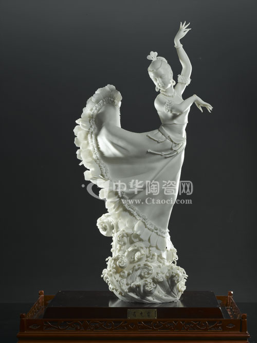 《大地飛歌》取義于廣西智慧與才華、愛(ài)與美的象征——“歌仙”劉三姐,作品精彩演繹了劉三姐踏著竹排,手持繡球,唱著山歌的美麗形象,并在歌舞中傳達(dá)出“和平要由我們演奏,友誼要讓我們歌頌,未來(lái)要靠我們描繪”的共同心聲!洞蟮仫w歌》成為“2008年中國(guó)—東盟博覽會(huì)指定國(guó)禮”,并載入東盟史冊(cè),并被廣西博物館永久珍藏。《雀之靈》靈感來(lái)源于云南的傣族舞蹈,通過(guò)建白瓷淋漓盡致地表現(xiàn)了富含云南民族傳統(tǒng)文化的傣族舞姿,超凡脫俗。作品并獲得多項(xiàng)榮譽(yù),05年榮獲“第七屆中國(guó)工藝美術(shù)大師精品博覽會(huì)”金獎(jiǎng),07年榮獲福建省首屆創(chuàng)新設(shè)計(jì)評(píng)比金獎(jiǎng),更名為《憑海臨風(fēng)》,08年被英國(guó)珍品館永久收藏,09年被云南省博物館永久收藏!秷A滿(mǎn)如意》中的球就是代表圓滿(mǎn),并配以如意,造型簡(jiǎn)潔、意境深邃。(蘇曉霞)