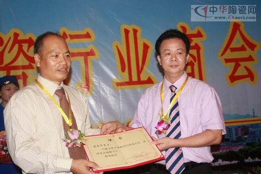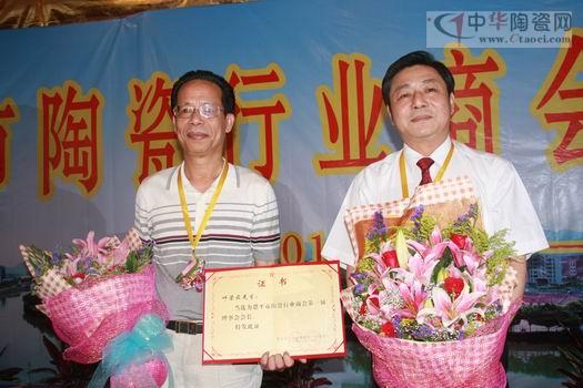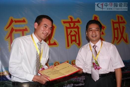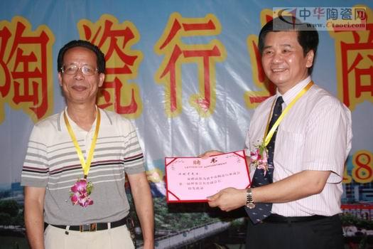 恩平市委副書記、恩平市長李灼冰為當選的市陶瓷行業(yè)商會第一屆理事會副會長陳耀強、羅錦堂、吳錦強、冼偉泰、陳廷創(chuàng)、羅景橋頒發(fā)證書。