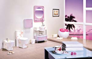 看著白色陶瓷面盆里漂浮著片片“桃花”、朵朵“玫瑰”,通過手繪讓陶瓷充滿生命力而又個性張揚,你會驚訝發(fā)現(xiàn),就連一向 素面朝天的衛(wèi)浴潔具也有了賞心悅目的新面孔!