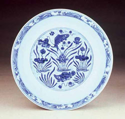 明代景德鎮(zhèn)御窯廠燒造的宣德青花瓷器,在中國(guó)陶瓷發(fā)展史上具有很重要的地位。它以其古樸、典雅的造型,晶瑩艷麗的釉色,多姿多彩的紋飾而聞名于世,與明代其他各朝的青花瓷器相比,其燒制技術(shù)達(dá)到了最高峰,成為我國(guó)瓷器名品之一,其成就被稱頌為“開(kāi)一代未有之奇”。宣德官窯的青花燒造數(shù)量是空前的,據(jù)《大明會(huì)典》記載,宣德八年(1433),朝廷一次就下達(dá)了要景德鎮(zhèn)燒造龍鳳瓷器四十四萬(wàn)三千五百件的任務(wù)。其中青花占大多數(shù),由此可見(jiàn)其燒造規(guī)模、數(shù)量之大。產(chǎn)品不僅供宮廷日常生活之需,而且也作為商品大量行銷海外,以及對(duì)國(guó)外入貢者的答贈(zèng),成為東西文化交流的見(jiàn)證。