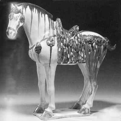 唐代是中國歷史上最具開放性的時期之一。絲綢之路帶來的馬、駱駝、金銀器、以及從絲綢之路走來的胡人,都成為大唐貴族生活時尚中不可缺少的內(nèi)容。大唐人不僅生前享受這些盛世升平,生后也希望延續(xù)甚至光大這種享受。所以崇尚厚葬的唐人就用唐三彩制器寄托他們的追求:這些健碩的馬和駱駝、健壯的胡人、美麗的女俑,比現(xiàn)實(shí)還要多彩,往生比今生更奢華!唐三彩和其他的中國陶瓷器不同之處在于,它少有日常用具,而多是寄托著人們精神追求的藝術(shù)創(chuàng)作。這就使它具有天然的藝術(shù)感染力。所以它一被發(fā)現(xiàn)就廣受青睞。上世紀(jì)80、90年代,隨著國內(nèi)盜掘古墓之風(fēng)的泛濫,眾多唐三彩精品被盜運(yùn)國外,唐三彩一時成為中國陶瓷藝術(shù)品國際市場的翹楚。直到本世紀(jì)初,唐三彩精品在紐約、倫敦的拍賣會上仍會以幾十萬到一百多萬美金拍出。近年來,由于中國政府和歐美有關(guān)國家對盜掘走私文物的活動進(jìn)行聯(lián)手打擊,唐三彩的國際市場流通受到限制,其價格大幅下降。許多從事唐三彩經(jīng)營的歐美古董商,現(xiàn)在苦于囤儲,無法出貨,但唐三彩的藝術(shù)魅力仍然時時令人回味。在倫敦古董店的櫥窗,往往在最重要的位置擺放一尊唐三彩制品,以示經(jīng)營品位的高雅。