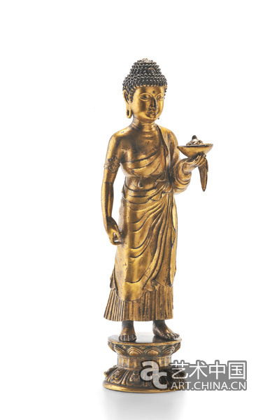 遼代銅鍍金佛立像,珍稀造像,10世紀(jì)至11世紀(jì),高43.7厘米。