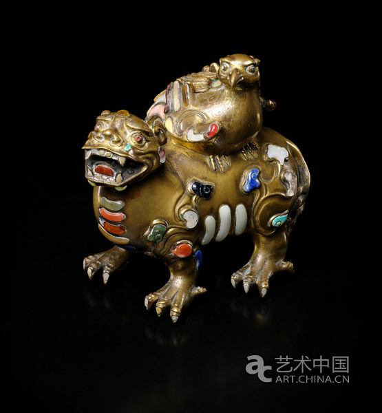 熙銅鎏金嵌百寶麟子鳳雛香熏