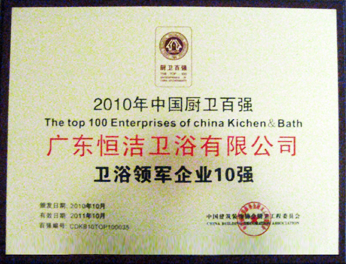 恒潔衛(wèi)浴入選“2010年中國(guó)廚衛(wèi)百?gòu)?qiáng)企業(yè)” 一方面表明恒潔衛(wèi)浴的行業(yè)地位得到了行業(yè)內(nèi)部和消費(fèi)者的充分肯定,另一方面也是恒潔衛(wèi)浴多年來孜孜不倦、嚴(yán)格要求的品質(zhì)見證。