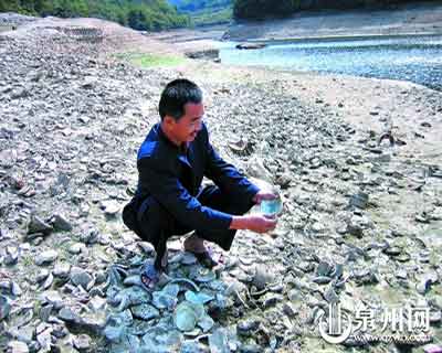 連續(xù)幾個月干旱,南安金淘鎮(zhèn)毓南村躍進水庫的水位下降了近8米,使得三座古窯址顯山露水。泉州市第三次全國文物普查小組專家聞訊趕往現(xiàn)場查看。經(jīng)考古鑒定,這些窯址為元代,主要燒制青瓷和青白瓷,器形以盤、碗等日用器皿居多。據(jù)悉,這是南安金淘首次發(fā)現(xiàn)古窯址,對進一步研究南安窯有重大的意義。
