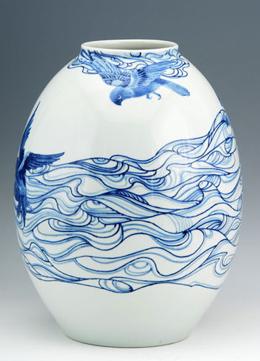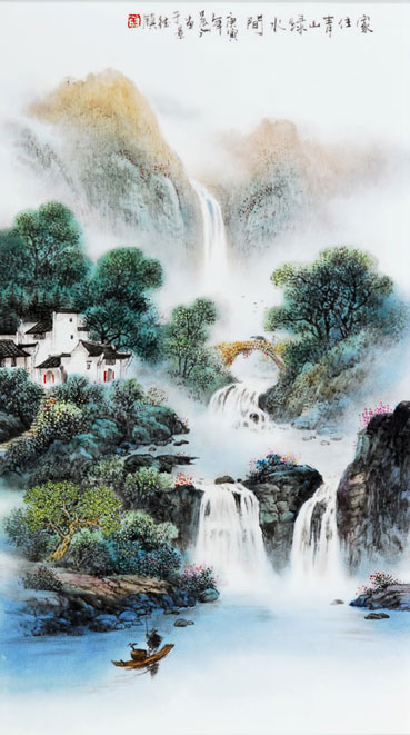 光影青花藝術(shù)創(chuàng)始人汪吟泉的青花山水, 在傳統(tǒng)的青花畫法上吸取西洋畫的光影透視, 以其“釉下填白光影青花”技法, 創(chuàng)作出“雪”,“雨”, “夜”三景, 開創(chuàng)了一個青花繪畫新樣種,受到廣大藏家的歡迎。