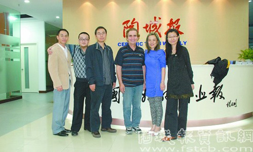 圖為佛山市奧特瑪陶瓷有限公司董事長(zhǎng)孫宇群(右二)、總裁監(jiān)督辦總監(jiān)蘇可路(左一)以及Bedrosians公司(奧特瑪?shù)拿绹?guó)控股公司之一)負(fù)責(zé)人Gary Bedrosian先生(右三)與陶城報(bào)管理委員會(huì)主任李新良(左三)、陶城報(bào)執(zhí)行社長(zhǎng)朱奕(右一)、陶城報(bào)顧問(wèn)唐曙明(左二)的合影。