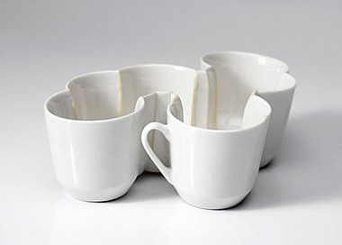 這是瑞典藝術家Kjell Rylander的陶瓷藝術品,它們使用了茶杯和咖啡杯等餐具做成,其中不少是用二手或是破碎了的盤子,新奇又富有創(chuàng)造力