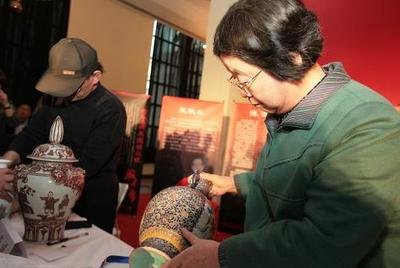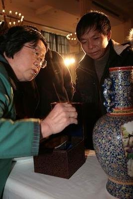 會場上,專家也紛紛拿出自己的絕活,為藏寶人解開心中的謎團。“你這副字畫是仿當代草圣林散之的。”宣家鑫才將一副字軸打開一半,就告訴對方。“海波,你也看看。”王春誠將手上一件瓷器遞給陳海波。陳海波連忙掏出一支小手電,翻來覆去地看了三、四遍,點了點頭,回頭告訴記者:“這的確是汪野亭先生的真跡。”并將其推薦入圍“2009上海十大民間藏寶珍品”候選藏寶。寶貝的擁有者竺先生長舒了一口氣,“這下放心了。”他說。