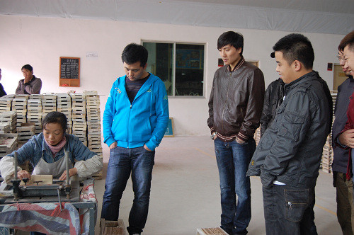 2010年10月28日,來自古城西安裝飾界的二十多位設(shè)計(jì)師朋友,在威尼斯商人瓷磚西安專賣店總經(jīng)理王濤先生的帶領(lǐng)下,來到公司陶瓷設(shè)計(jì)研發(fā)基地,成都新西南藝術(shù)陶瓷廠參觀交流,了解威尼斯商人瓷磚每款磚背后的故事,感受威尼斯商人瓷磚的文化和理念。
