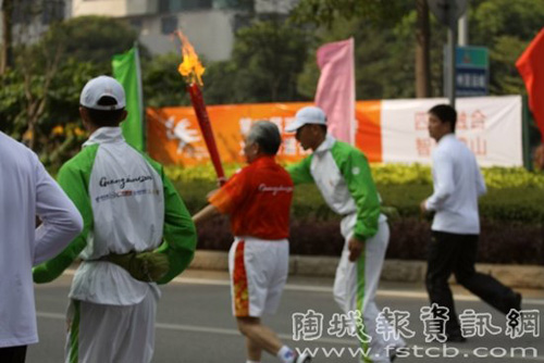 劉老在火炬護(hù)送隊(duì)員下跑步前進(jìn)