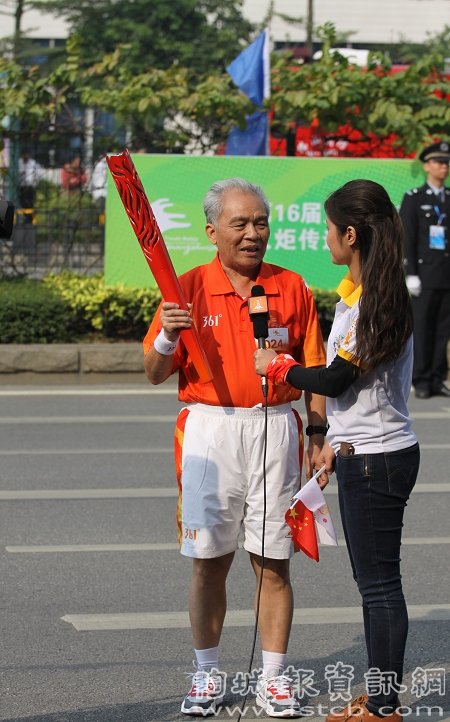 劉老在傳遞完圣火后接受媒體采訪