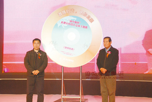 中國建筑學(xué)會室內(nèi)設(shè)計分會副理事長李書才、廣東新中源陶瓷有限公司銷售總經(jīng)理歐書軍為競賽主題曲揭幕