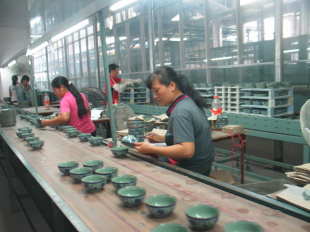來到現(xiàn)代化的天然氣隧道窯和輥道窯廠房,最為耀眼的是高大聳入云端的煙囪沒有半點黑煙,實現(xiàn)了綠色環(huán)保生產(chǎn)。據(jù)了解,近年來,“南山”公司為了使產(chǎn)品在東盟市場更具競爭力,高度重視科技創(chuàng)新工作,至目前,公司擁有大專以上文化的科技人才56人。每年投入的科研經(jīng)費占銷售收入的4.5%左右。2008年,該公司投入6000多萬元引進新設備9個子系統(tǒng),實施煤改天然氣技術改造,有條不紊地進行鋰鎂瓷系列產(chǎn)品的試制工作。去年5月第一條天然氣隧道窯投產(chǎn),新開發(fā)的30多個產(chǎn)品器型投入批量生產(chǎn)。但是,生產(chǎn)出來的產(chǎn)品沉底變形、釉面針孔多、吸煙無光澤,入級率低。在此情況下,公司新產(chǎn)品研發(fā)部仔細查找原因,從配方、器型方面進行調(diào)整,在燒成溫度和氣溫穩(wěn)定的情況下進行配方試驗,重新制定產(chǎn)品生產(chǎn)工藝參數(shù),用拓寬產(chǎn)品燒成溫度范圍來提高白度和透光度,終于使產(chǎn)品白度、透光度、釉面光澤度全部達到設計要求。同時,根據(jù)國內(nèi)和東盟等國外市場非常鐘情古青文化瓷的情況,組織研發(fā)力量進行科技攻關,成功推出了“孔子圣跡圖”、“紅中國”等花面產(chǎn)品。2009年,該公司研發(fā)的鋰鎂瓷和古青文化瓷分別獲自治區(qū)級技術創(chuàng)新項目獎。產(chǎn)品和生產(chǎn)技術填補了廣西區(qū)內(nèi)的空白,處于國內(nèi)領先水平,正在申報科技進步獎勵與專利。