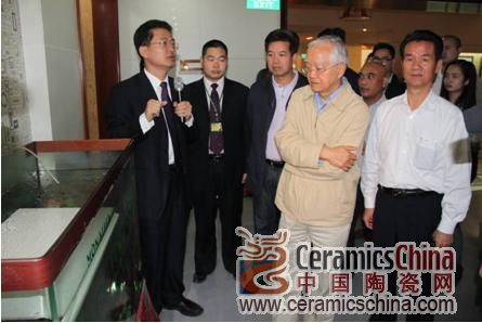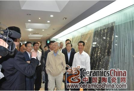 調(diào)研組一行首先來到輕質(zhì)新型建材館,張旗康董事詳細(xì)為調(diào)研組介紹了目前國內(nèi)唯一、代表世界最先進(jìn)水平的新型建材--建筑陶瓷薄板(PP版)和無機(jī)輕質(zhì)板材(QQ板)。當(dāng)了解到浮在魚缸中的無機(jī)輕質(zhì)板(QQ板)50%以上的原料為陶瓷工業(yè)廢渣,具備防火、隔音等多種功能以后,調(diào)研組人員都驚嘆當(dāng)今民營企業(yè)的創(chuàng)新之舉。此外,工作人員還現(xiàn)場(chǎng)演示了3.5mm的PP板,其韌性和硬度令在場(chǎng)人員折服,而各種不同風(fēng)格和堪比天然石材的表面裝飾效果更令調(diào)研組人員大加贊嘆。吳敬璉專家對(duì)蒙娜麗莎作為主起草人的《陶瓷板》、《建筑陶瓷薄板應(yīng)用技術(shù)規(guī)程》兩項(xiàng)國家標(biāo)準(zhǔn)頗感興趣,對(duì)兩項(xiàng)標(biāo)準(zhǔn)的起草程序等關(guān)鍵環(huán)節(jié)提出了疑問,在場(chǎng)的陶瓷行業(yè)專家陳帆教授一一做了解答,并就建筑陶瓷行業(yè)相關(guān)標(biāo)準(zhǔn)的制