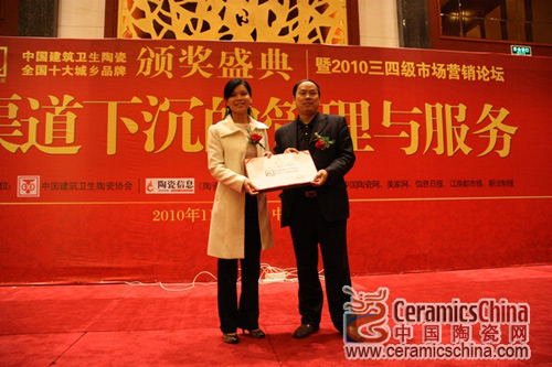 佛山卡羅瑞思陶瓷擁有成熟的生產(chǎn)制造優(yōu)勢(shì)和適合大量穩(wěn)定的客戶資源,該公司一貫秉持“專門針對(duì)三四級(jí)市場(chǎng)開發(fā)”的理念,注重鄉(xiāng)鎮(zhèn)及農(nóng)村市場(chǎng)消費(fèi)者的產(chǎn)品需求和價(jià)格需求,已經(jīng)連續(xù)三年保持40%的高速增長(zhǎng)。目前,卡羅瑞思陶瓷在全國(guó)各省、地、市建立經(jīng)銷網(wǎng)點(diǎn)300多家,市場(chǎng)占有率正不斷擴(kuò)大。2010年,卡羅瑞思公司不斷創(chuàng)新產(chǎn)品、更新設(shè)備、加大品牌建設(shè),全面拓寬終端的銷售渠道,進(jìn)一步擴(kuò)大卡羅瑞思陶瓷在市場(chǎng)中的影響力。它也是繼2009年之后,第二次榮獲全國(guó)十大城鄉(xiāng)品牌的殊榮。恭喜他們。