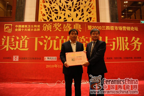 備受行業(yè)人士關(guān)注的2010中國(guó)建筑衛(wèi)生陶瓷“全國(guó)十大城鄉(xiāng)品牌”獲獎(jiǎng)名單日前揭曉。最終,來(lái)自湖南、湖北、江西等產(chǎn)區(qū)的十家陶瓷品牌名列榮譽(yù)榜,他們分別是:陶夫人陶瓷、邦克陶瓷、福爾康陶瓷、瑞景陶瓷、凱旋陶瓷、鴻雙喜陶瓷、卡羅瑞思陶瓷、沁園春陶瓷、五環(huán)陶瓷和天瑞陶瓷等。其中,卡羅瑞思陶瓷與福爾康陶瓷連續(xù)兩屆獲得此項(xiàng)殊榮。