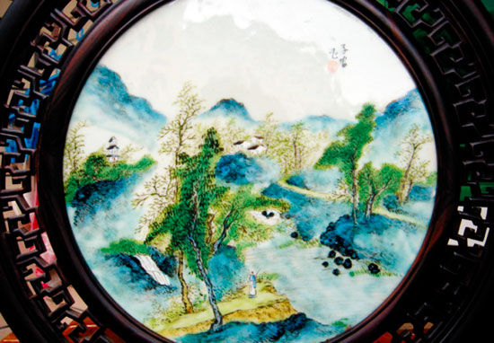 景德鎮(zhèn)瓷板畫始于明清時期。民間曾把它鑲嵌在屏風、柜門、床架等處用于裝飾。清朝中期的一些民間藝人,運用中國畫中淺絳彩的繪畫方法進行臨摹和創(chuàng)作,開創(chuàng)了瓷板畫的先河。