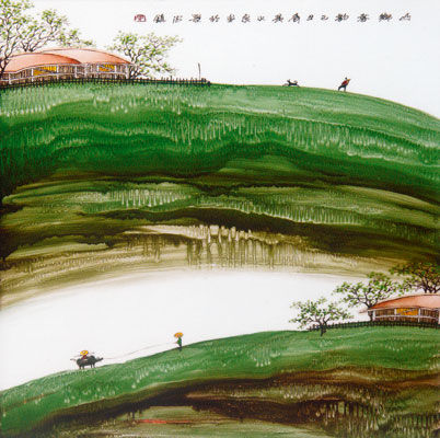 山鄉(xiāng)春韻·釉上潑彩瓷板 作者:江西省工藝美術(shù)大師 黃水泉