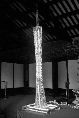 利用廢舊鐵線(絲)、鐵皮,經(jīng)扭曲、裁割、粘合成的《廣州塔》,高2.1米,則表達(dá)了民間藝人對廣州亞運(yùn)會的關(guān)注和熱愛。