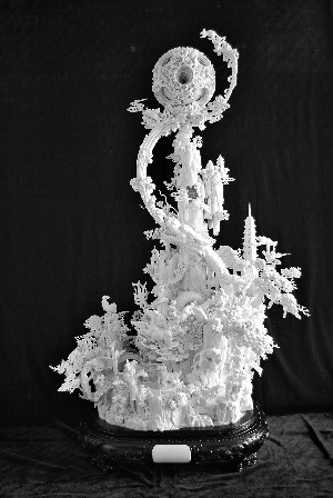 牙雕《盛世乾坤》取材是一支有上百年歷史,重80公斤的非洲象牙。