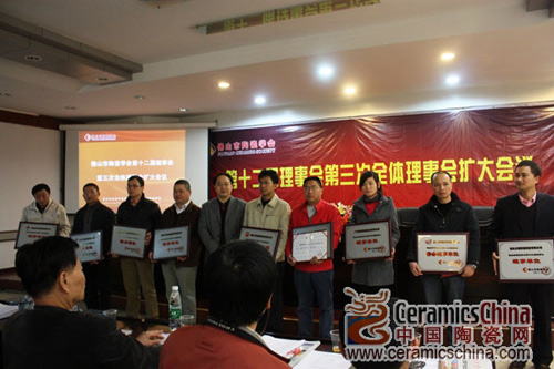 12月18日下午,佛山市陶瓷學(xué)會(huì)第十二屆理事會(huì)第三次全體理事會(huì)在佛山市質(zhì)檢所召開(kāi)。佛山市科協(xié)主席黃文、佛山市陶瓷學(xué)會(huì)理事長(zhǎng)馮斌和陶瓷學(xué)會(huì)其他領(lǐng)導(dǎo)、理事以及行業(yè)媒體出席了會(huì)議。