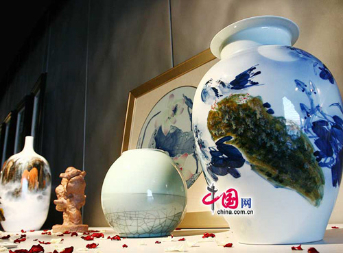 中國(guó)收藏2010十大藝術(shù)陶瓷名品展上的精美作品。喜悅(博夢(mèng)堂 攝影報(bào)道)