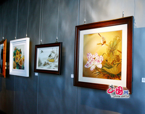 中國(guó)收藏2010十大藝術(shù)陶瓷名品展上的精美作品。瓷板畫(huà)(博夢(mèng)堂 攝影報(bào)道)