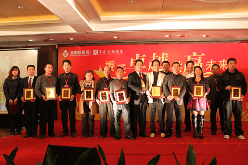 為了答謝廣大經銷商朋友對品牌的支持與付出,對在2010年里取得優(yōu)異成績的經銷商代表進行表彰,樹立標桿榜樣,在晚會上,康建運動陶瓷、金利高陶瓷還同時頒發(fā)了金牌經銷商獎及品牌推廣、經營管理、銷售渠道、店面形象等各類單項獎,讓獲獎經銷商們的辛勞付出得到表彰,也讓經銷商們感受到了來自廠家的鼓勵與支持力量。