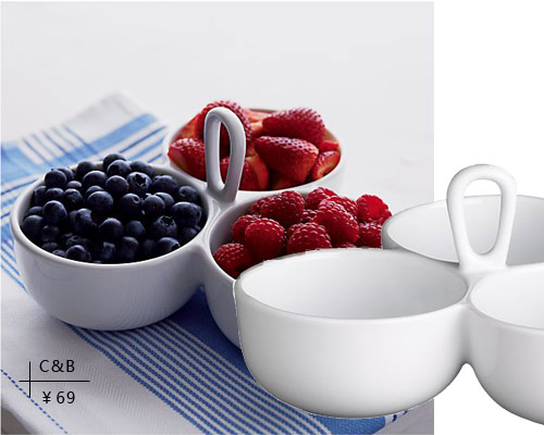 搭配點(diǎn)評(píng):白色三頭小果盤可以用來(lái)放置小型的水果、堅(jiān)果或者調(diào)味品。連體的設(shè)計(jì)易于清潔整理。