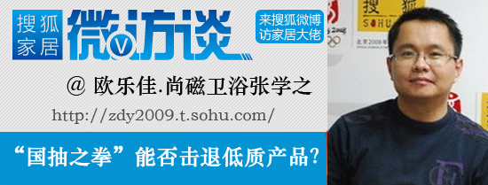 近幾年隨著房價問題日益嚴(yán)峻,“住”已成為最突出的民生熱點(diǎn),如何讓百姓不但住得起而且住得好,成為了與廣大群眾利益攸關(guān)的話題。作為房地產(chǎn)下游行業(yè)的陶瓷衛(wèi)浴行業(yè),與人們居住質(zhì)量息息相關(guān)。隨著“3.15”的到來,記者就消費(fèi)者關(guān)心的產(chǎn)品質(zhì)量和價格問題,通過搜狐微博在線采訪了歐樂佳.尚磁衛(wèi)浴營銷副總裁張學(xué)之。期間,不少“微友”也就討論問題參與到討論當(dāng)中,分享了他們的觀點(diǎn)。