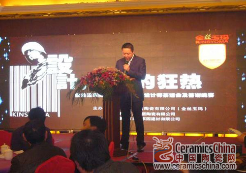 3月3日下午,泰州市會(huì)賓樓永泰酒店二樓宴會(huì)廳燈火輝煌,賓朋如云。一場(chǎng)由佛山市鑫鑾陶瓷有限公司(金絲玉瑪)與泰州市天軒家園建材有限公司聯(lián)合舉辦的“2011年金絲玉瑪陶瓷泰州設(shè)計(jì)師茶話會(huì)及答謝晚宴”在此盛大舉行。天軒家園建材有限公司董事長(zhǎng)藍(lán)道峰、運(yùn)營經(jīng)理王運(yùn)金、金絲玉瑪陶瓷廠家代表高濤、泰州晚報(bào)以及近300名泰州市高端設(shè)計(jì)師嘉賓出席了此次茶話會(huì)。據(jù)相關(guān)負(fù)責(zé)人介紹,此活動(dòng)是金絲玉瑪陶瓷2011年全國首場(chǎng)設(shè)計(jì)師活動(dòng),也是金絲玉瑪陶瓷與泰州設(shè)計(jì)師的首場(chǎng)高規(guī)格、大規(guī)模茶話交流會(huì)。