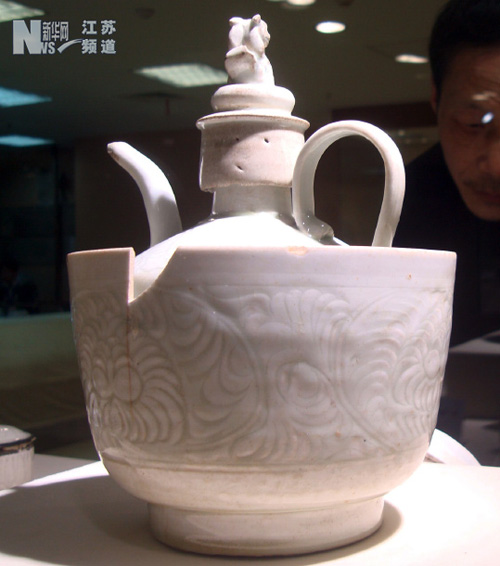 古代陶瓷精品“刻花狗頭壺”。