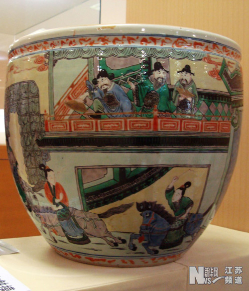 古代陶瓷精品“五彩人物圖軸缸”。