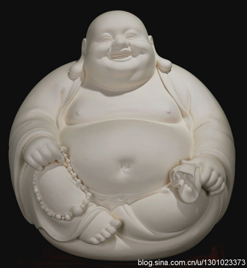 他的“手把藝術(shù)瓷”的開發(fā)理念是:現(xiàn)代人工作忙,生存壓力大,人人都需要并喜歡能帶來身心愉悅的把玩小品,而《開心彌勒》正好能能滿足人們的這種心理需求。首先,彌勒佛豁達(dá),超脫,大肚能容、開口便笑,能讓人相見愉悅,身心放松;其次,彌勒佛融匯福、祿、壽、喜諸多意蘊(yùn),寄寓著人們的美好生活期望;而用獨(dú)具魅力的德化白瓷將之塑造得一團(tuán)和氣,則捧在手上沉旬旬的(接近實(shí)心)可玩,放于臺(tái)案能自在搖晃;此外,白瓷若不上釉則具一定吸水率,可灑上香水增其味,若放微波爐里轉(zhuǎn)一兩分鐘,又可添其溫。你看,一件小小瓷藝品,能捧著暖,摸著滑,搖著動(dòng),聞著香,還令人可賞,可樂,可思,可悟,誰會(huì)不喜歡呢?