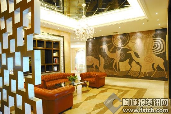 “在前廳重點(diǎn)展示了企業(yè)的形象和開(kāi)放的胸懷,在許多空間我們用雕刻畫來(lái)表達(dá)空間,也同時(shí)體現(xiàn)了企業(yè)的文化和對(duì)設(shè)計(jì)的尊重。在整體的設(shè)計(jì)思路上主要用簡(jiǎn)單、樸實(shí)的裝飾手法,去除了浮夸、虛無(wú)的理念。”在剛剛舉行的第七屆中國(guó)陶瓷行業(yè)新銳榜上,瑪卡洛尼無(wú)疑是一批“黑馬”,她分別囊括了“年度品牌”和極具含金量的“年度最佳展廳”,對(duì)于一個(gè)新品牌,剛誕生就獲得如此殊榮,至于其中緣由,瑪卡洛尼運(yùn)營(yíng)總經(jīng)理嚴(yán)龍首先介紹了展廳的詳細(xì)情況,以此說(shuō)明其獲獎(jiǎng)的理由。據(jù)嚴(yán)龍介紹,馬卡洛尼新展廳除在內(nèi)部裝飾上注重產(chǎn)品與空間結(jié)合外,在外立面上,同樣考慮與到產(chǎn)品的特點(diǎn)和最終展示效果,“在外觀形態(tài)上,通過(guò)平面構(gòu)成的方式,用600×600、300×600mm的線條磚形成了一個(gè)梯形的品牌基底。”