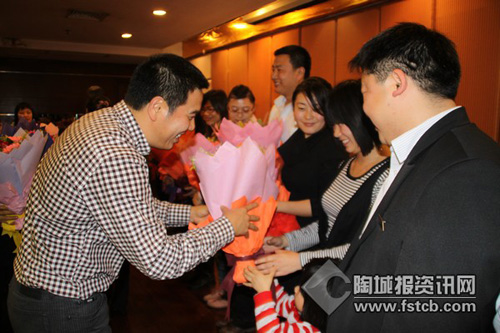 董事長(zhǎng)為各位銷售精英和家屬獻(xiàn)花