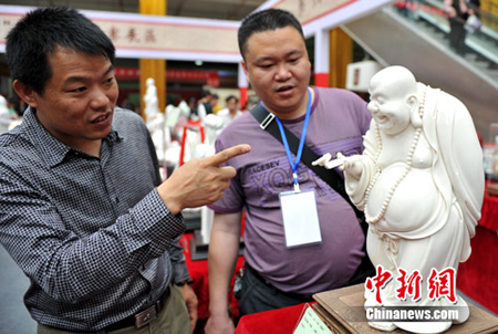 2011年4月28日,由福建工藝美術(shù)大師連紫華制作的佛像雕塑作品亮相第六屆中國(guó)(莆田)海峽工藝品博覽會(huì),惟妙惟肖的的作品讓人駐足觀看。
