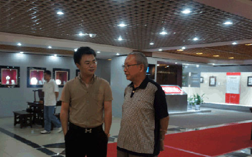 中國工藝美術(shù)大師王隆夫(右)同藏樂閣總經(jīng)理彭鵬(左)在進(jìn)行交談