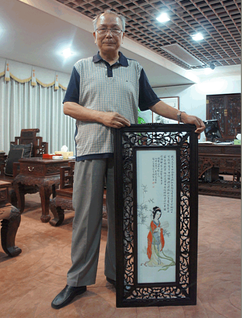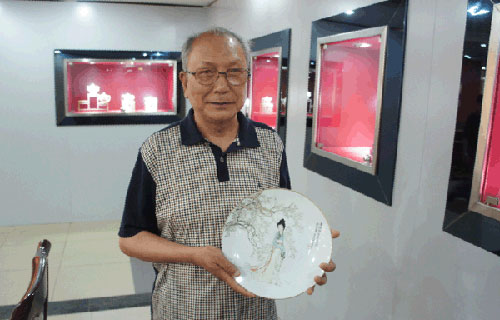 中國工藝美術(shù)大師王隆夫和其作品《瀟湘妃子》合影