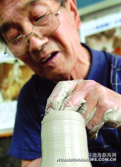 田景儒是田氏制陶第13代傳人,精氣神兒十足,根本不像75歲的老人。他自幼習(xí)學(xué)制陶,醉心陶藝,是唐山市手工制坯中堪稱“全活”的少數(shù)老師傅之一。