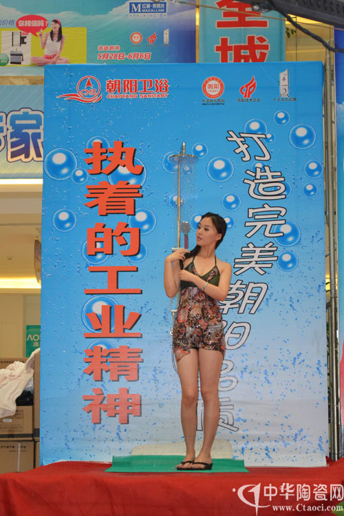 在促銷現(xiàn)場上,從紅星美凱龍入口一直到朝陽衛(wèi)浴店,幾百米的走道全部用光鮮的紅地毯鋪就,呈現(xiàn)出一派喜氣的畫面,給顧客帶來了貴賓禮遇的體驗(yàn)。開場的勁歌熱舞、活躍手提琴表演、產(chǎn)品展示與專業(yè)的模特走秀,將現(xiàn)場活動(dòng)氣氛渲染得愈加濃烈;而美女俊男的現(xiàn)場淋浴,更將現(xiàn)場氣氛推向了高潮,F(xiàn)場人潮涌動(dòng),火爆非凡,著實(shí)讓人感受到朝陽衛(wèi)浴大品牌的獨(dú)特魅力。
