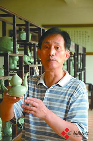 這幾年,葉國珍婉拒了眾多慕名而來要出高價收購他作品的陶瓷愛好者和收藏人士。“還是希望保存在藝術館里,以供更多喜愛南宋官窯的人們前來鑒賞。”為了弘揚杭州本土特有的南宋官窯瓷文化,葉國珍于2005年創(chuàng)辦了杭州蕭山南宋官窯藝術館,展示了一系列仿南宋官窯瓷器皿陳設瓷、文案品、茶案品、抽象藝術瓷和金獎作品等近2000種器型的作品,藝術館開館至今一直免費供市民參觀。“有時候,你會覺得像穿越回去一樣。仿佛看到八百年前,另一座發(fā)達的杭州城,看到那時候的審美與文化,看到那個年代的人,幸福,而且有創(chuàng)造力,和當下一樣。”