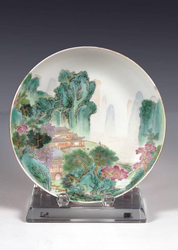 堂名款系指瓷器上書寫或刻劃私人住所或書房名稱,作為私家用瓷或收藏標(biāo)志的款識(shí),內(nèi)容包括堂名、齋名、軒名、室名、書房名、樓名,閣名等。堂名款最早出現(xiàn)于宋代,明代后期形成風(fēng)尚,清代則更為流行,民國時(shí)期繼續(xù)出現(xiàn),但已不及清代豐富。民國堂名款具有以下幾個(gè)特征:首先是一些達(dá)官貴人用瓷多有堂名,如袁世凱的“居仁堂制”、徐世昌的“靜遠(yuǎn)堂制”、曹錕的“延慶樓制”等。這些瓷器均為當(dāng)時(shí)名家所造,史載,1923年軍閥曹錕曾出重金聘潘旬宇彩繪文具,但是否所有署“廷慶樓制”款識(shí)的皆為曹錕用瓷,或皆為潘氏所繪尚需考證。這部分堂名款均以印章形式出現(xiàn)在作品的底部。其次是文人雅士多有堂名,尤其是彩瓷名家, 如潘甸宇之“古歡”、王琦之“甸甸齋”、程意亭之“佩古齋”等。從嚴(yán)格意義上說,這類款識(shí)應(yīng)稱為藝人畫室款識(shí)為妥。這部分款識(shí)見有印章形式,書寫在器物的外底,亦有與書法款識(shí)相結(jié)合書在器物的外壁,而以后者居多。更為常見的是以書法形式的綜合性堂名款識(shí),如張志湯的“星江張志湯寫于珠山亦陶齋西窗”。既有籍貫、姓名,也有齋名。由于這類款識(shí)已在人名款中加以介紹,故不再贅述。民國時(shí)期瓷器上署以堂名的器物較為多見,情況亦較為復(fù)雜,最為關(guān)鍵的是不能以款識(shí)中是否有“齋”、“軒”等字樣便定性為堂名款。因民國時(shí)期瓷器生產(chǎn)廠商號(hào)之名亦多見“軒”、“堂”、“齋”等字樣。貌似堂名,實(shí)則為商號(hào),與主人的關(guān)系不大。如活躍于1920-1937年的彩瓷名家梁兌石,民國初年畢業(yè)于饒州窯業(yè)學(xué)堂,回南昌后開麗澤軒瓷店,請(qǐng)藝人按顧客要求繪制瓷器,由于忙于經(jīng)營,無暇自己彩繪。當(dāng)時(shí)的南昌名家劉希任作品多被麗澤軒購買,而鄒文侯、萬云巖均曾受聘于麗澤軒瓷店彩繪。