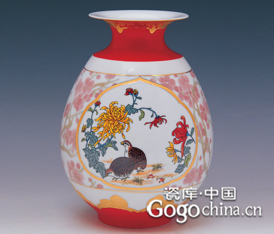 圖:金鑲玉釉下五彩福祿壽陶瓷花瓶-福瓶