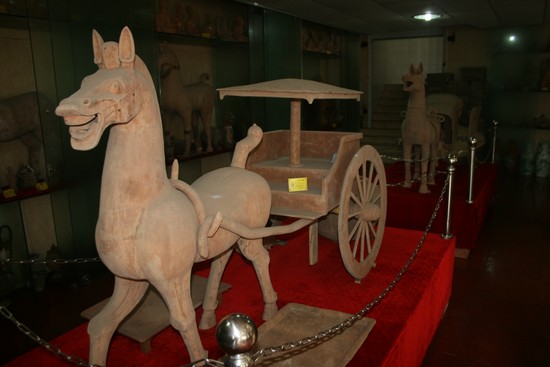 成都岳漢古器博物館重點(diǎn)展示了新津的高溫紅陶、灰陶以及各類漢代磚棺。從漢陶的種類看,分為人物、動物、器具幾類,人物有武士、官吏、農(nóng)民、樂舞藝人等,動物有馬、牛、羊、豬、狗等,器具有車馬、農(nóng)具、搖錢樹等。這些民間雕塑,造型簡潔,富有神韻,極具生活趣味。