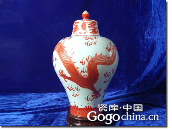 圖:仿乾隆豆青釉五爪金龍戴蓋梅瓶