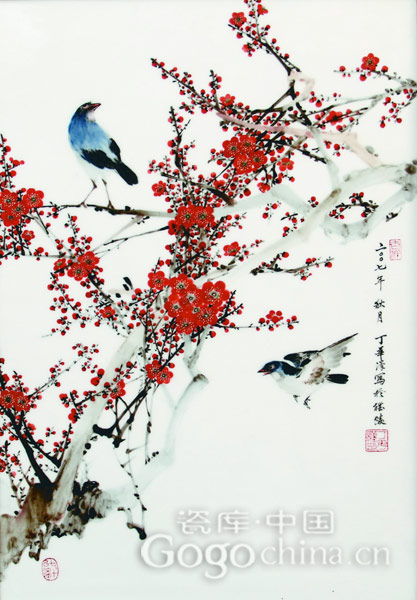 圖:丁華漢大師手繪釉下五彩瓷板畫(huà)梅花