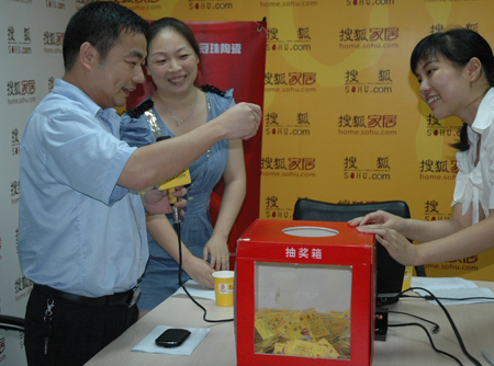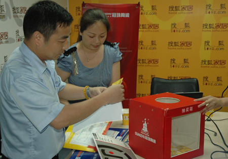 【彭經(jīng)理】:各位網(wǎng)友大家好,我是冠珠陶瓷廣東大區(qū)經(jīng)理彭經(jīng)理,很榮幸今天能借助搜狐的網(wǎng)絡(luò)平臺(tái)與各位消費(fèi)者和網(wǎng)友們一起見證此次抽獎(jiǎng)活動(dòng)。冠珠陶瓷是新明珠集團(tuán)旗下的知名陶瓷品牌,在19年的成長(zhǎng)歷程中逐步被行業(yè)認(rèn)可,更受到了越來(lái)越多消費(fèi)者的喜愛與支持。為答謝廣大消費(fèi)者,冠珠陶瓷攜手全國(guó)經(jīng)銷商開展感恩促銷活動(dòng),7月30日至8月1日活動(dòng)在廣西火熱進(jìn)行,大家可以看看這就是活動(dòng)當(dāng)天店里的促銷現(xiàn)場(chǎng),非常火爆,僅3天廣西的成交量就達(dá)兩千多戶;顒(dòng)中驚喜不斷:有進(jìn)店送禮、新品買三送一等為消費(fèi)者實(shí)實(shí)在在省錢的促銷內(nèi)容,其中一項(xiàng)就是今天即將在這里進(jìn)行的鉆戒抽獎(jiǎng)活動(dòng)。今天的抽獎(jiǎng)儀式將現(xiàn)場(chǎng)抽出5名鉆戒中獎(jiǎng)?wù)。只要你參與了我們的活動(dòng),就有機(jī)會(huì)得到一張抽獎(jiǎng)券,各地經(jīng)銷商再將抽獎(jiǎng)券快遞到佛山冠珠陶瓷總部。